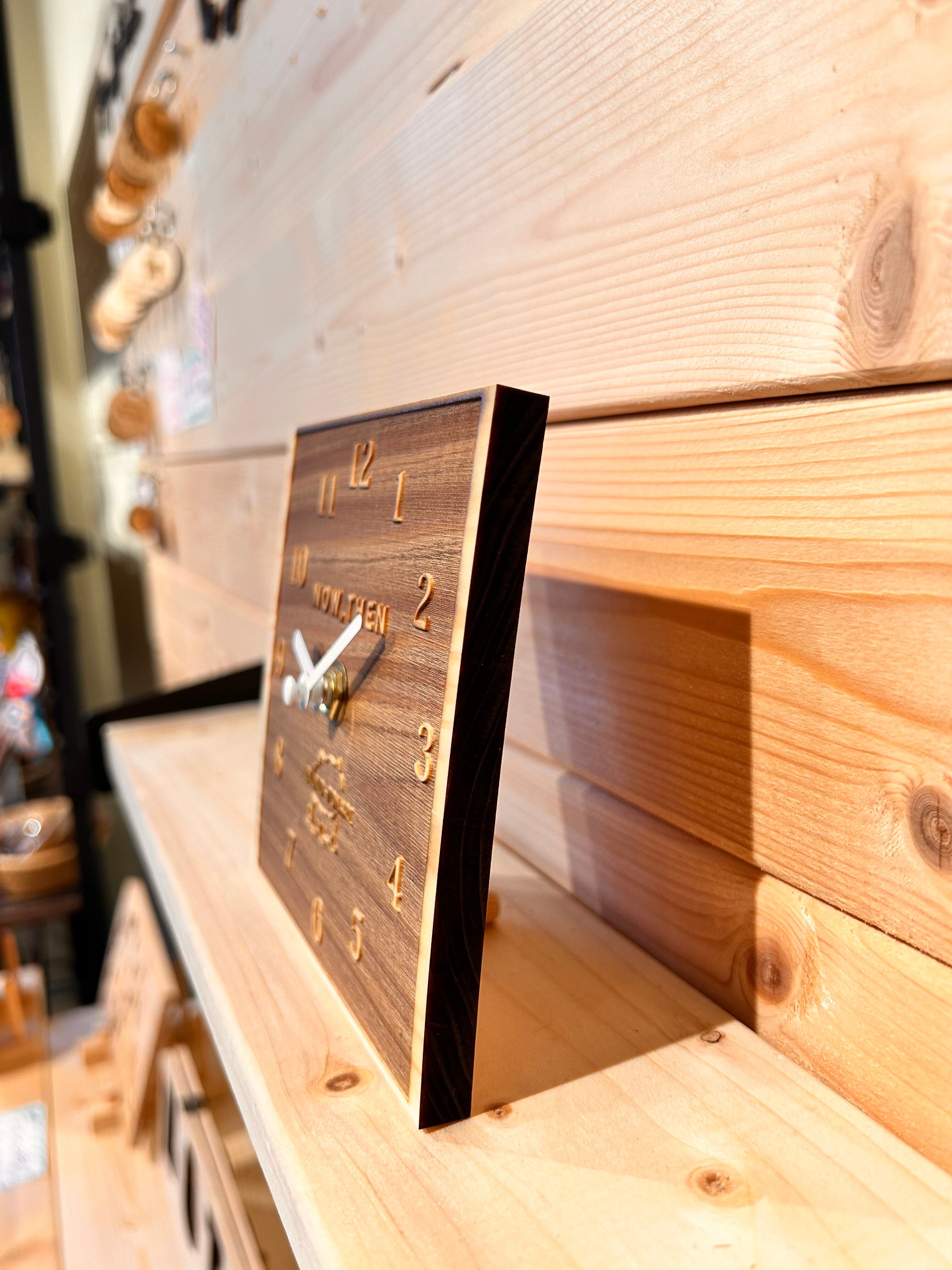 オリジナルの木製ひのき時計です。あたたかみのあるデザインと木の香りが癒やしてくれます。